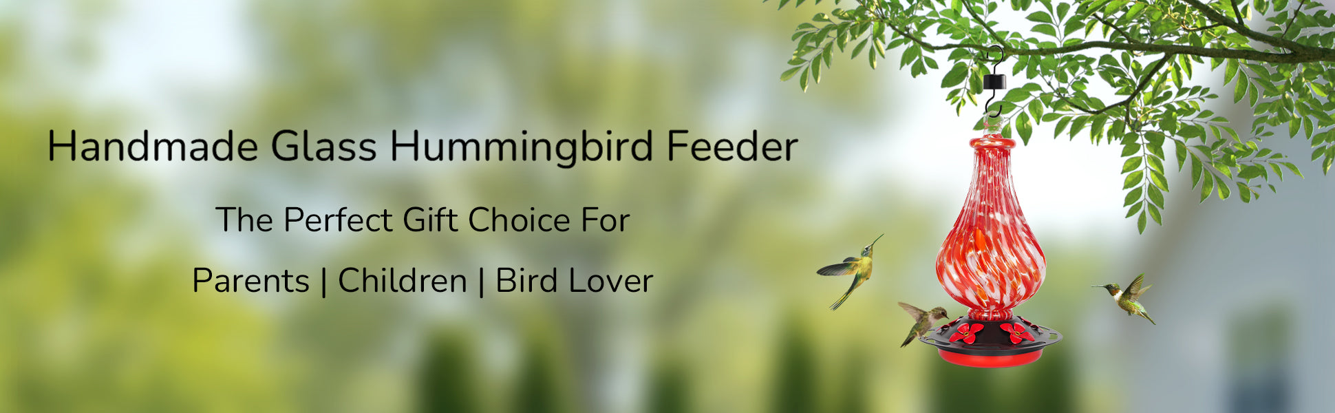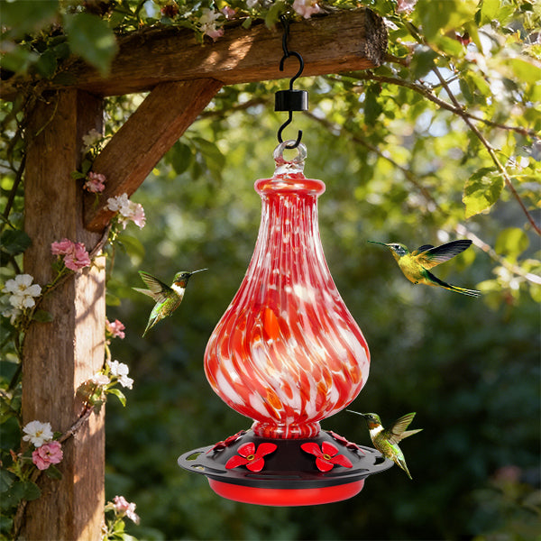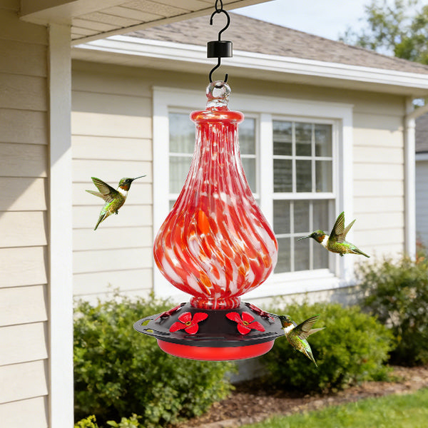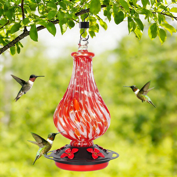 Hand Blown Glass Hummingbird Feeder for Outdoors Hanging