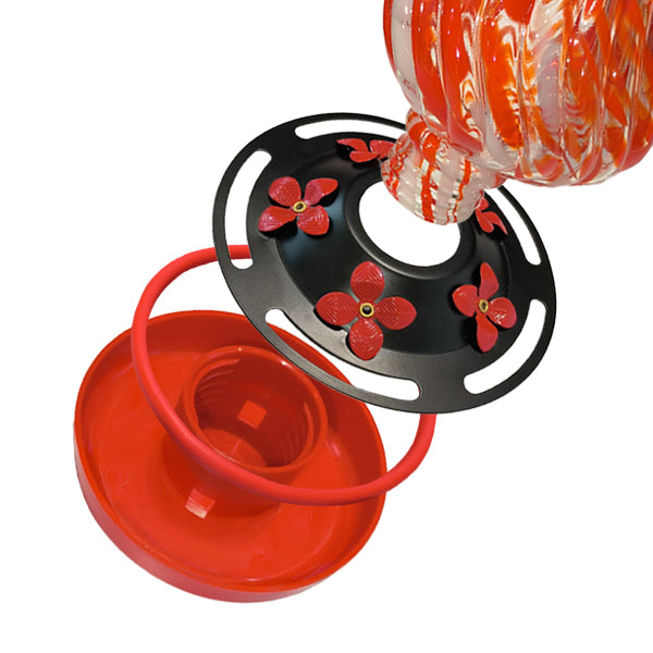Carefully selected colors mimic natural flowers to attract hummingbirds. Hand-blown glass with embedded pigment ensures durability, fade resistance, and adds a beautiful touch to any outdoor space.